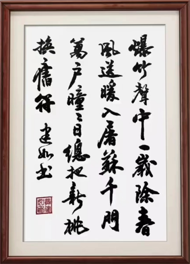 费建如 ,笔名:水墨居士,男 ,汉族,1961年出生于,江苏省,淮安市。本人自小酷爱书法,早年学习楷书,临摹欧阳询《九成宫醴泉铭》,后来研习二王、赵孟頫书风,并持续了四十余年的自学过程。擅长创作榜书、行书、草书。其榜书作品笔画厚重、苍劲有力、富含古意。行、草作品笔锋运用自如,笔画流畅自然,每一笔都显得婉转有力。作品展现出书写者的自信和深厚的书法功底。其作品根据中国书画家协会组委会评审通过,现为中国书画家协会会员,国家一级书法家,当代最具收藏价值艺术家。作品润格:国内定价一平尺30000人民币,国外定价一平尺4143美元。